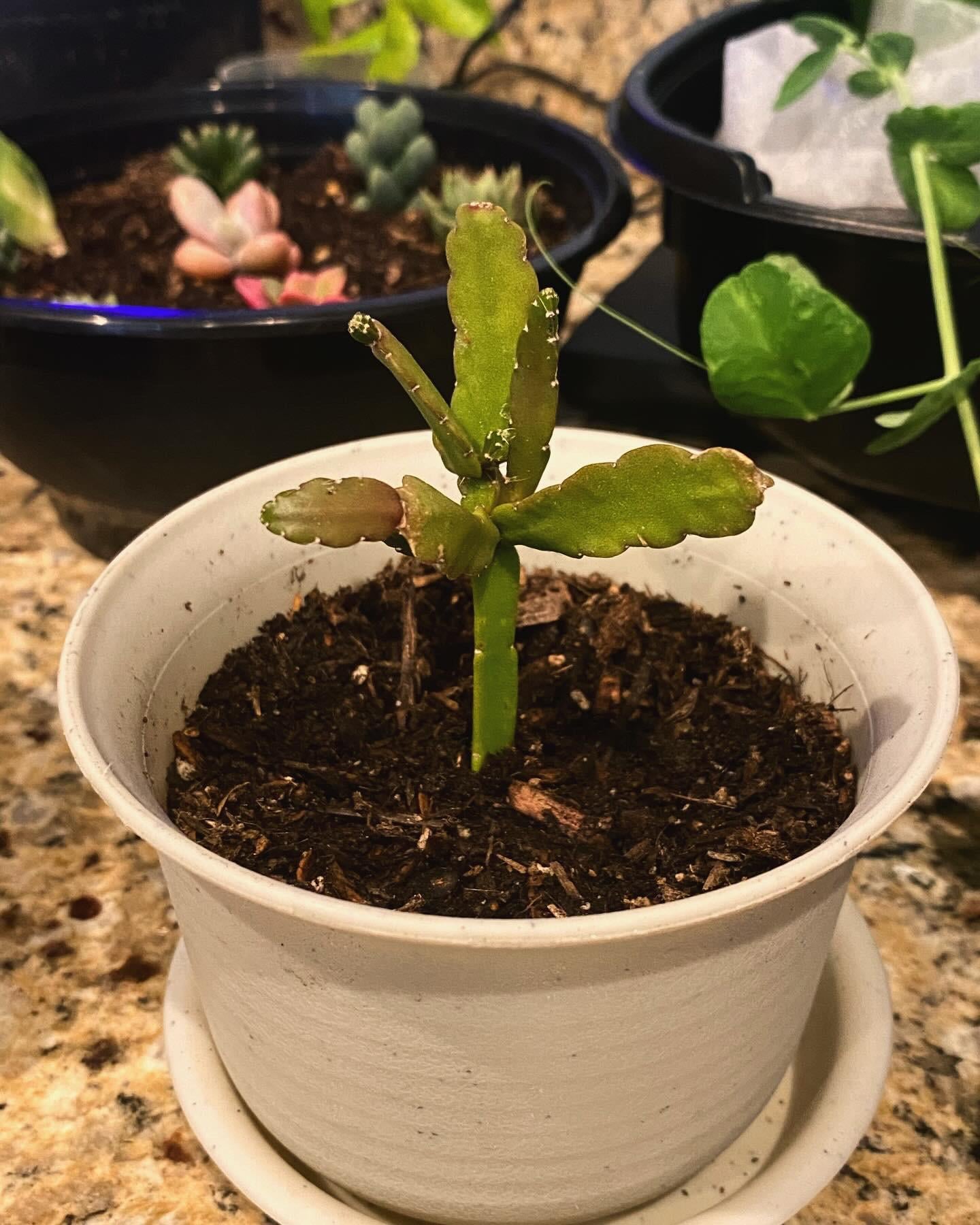 注文した多肉植物の挿し木の詰め合わせの中にこの挿し木が届きました。この小さな植物が何なのかわかる人はいますか? 4 インチの鉢に植えられていますが、この写真が撮影されたときから、土は水はけのよい土に交換されています。 また、水やりや霧吹きはしたほうがいいのでしょうか、それとも根が生えるまでは乾いたままにしておくべきでしょうか? (挿し木の根元に水分があると根の成長が促進されるかどうかはわかりませんでした)