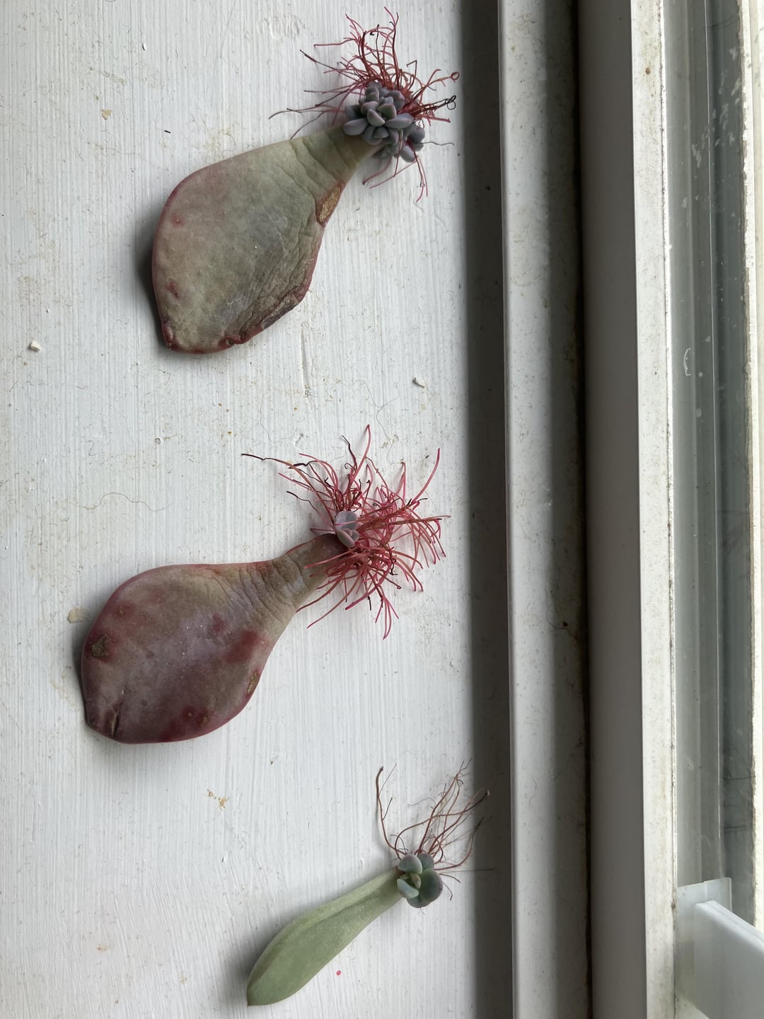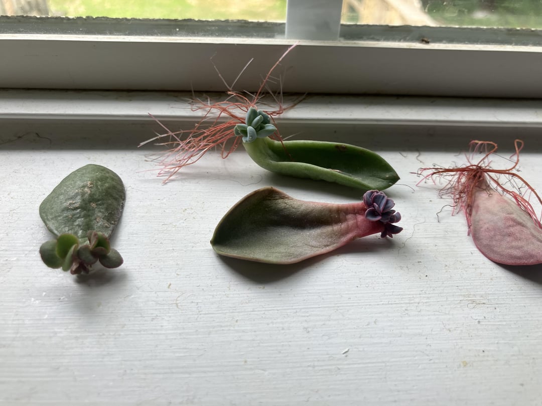 2、3本は小さな苗が生えているが根はあまり出ていない。2本は根がたくさん生えていて苗も見栄えが良い。1本は根がたくさんあるが苗が出ていない。そろそろ土に植えるべきでしょうか?土や鉢植えについてアドバイスはありますか?明らかにここでとても元気なので、窓辺に置いておこうと思います!普段は無視していますが、根が縮んだり乾いたりしないように、時々水を数滴振りかけます。成長が楽しみです!