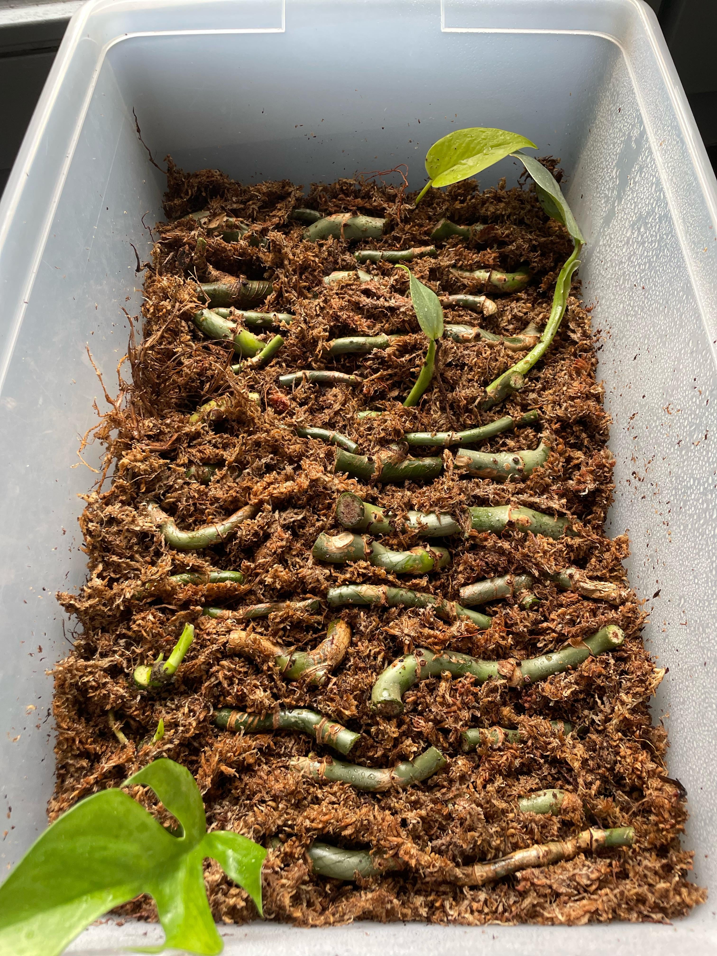 初めて小道具箱を作りました。ヒントがあれば教えてください。ほとんどはフィロのシルバーソードウェットスティックとミニモンステラ数本、ランダムなネオン写真です。笑 芽が出るかどうかもわかりません🤞🤞