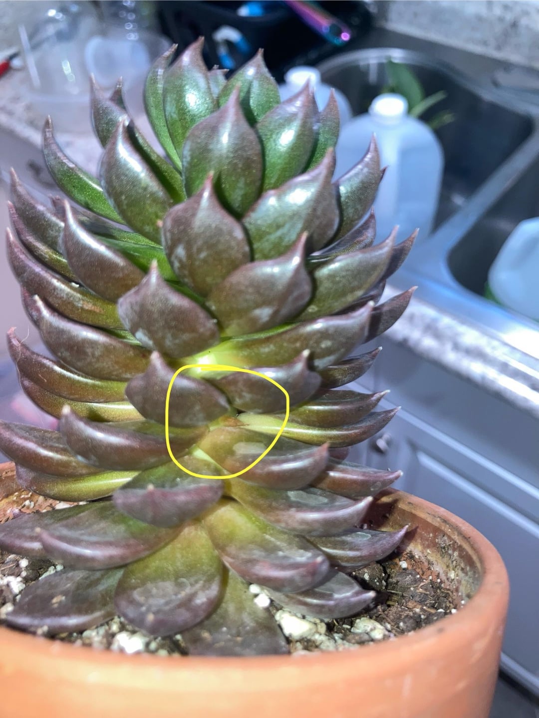 これは花茎ですか?オフセットではないですよね?私の植物は通常もっとコンパクトなので、花茎の始まりを見たことはありません。切り取って支柱を立てて、これを見つけました。でも、オフセットは通常はこのようには見えませんよね?