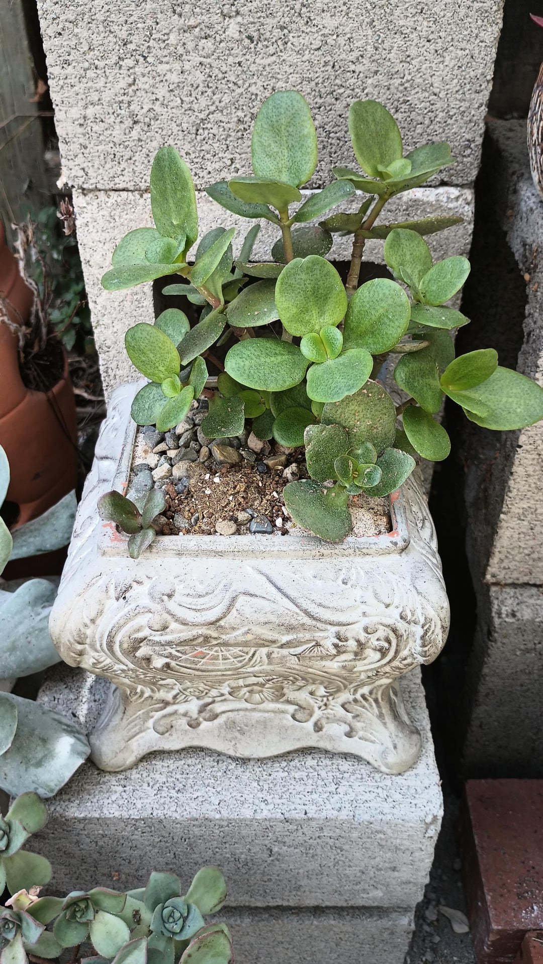 こんにちは。4~5か月前にこの植物を見つけました。小さな花がたくさん落ちていました。それは赤ちゃんだったことが分かりました。 中古で手に入れたおしゃれな鉢に植え替えて、赤ちゃんたちを小さなトレイに入れて忘れてしまいました。 いくつかは根を生やしたので、垂直の庭に植えました。 見た目もいいですね! 自由な植物が支配します!