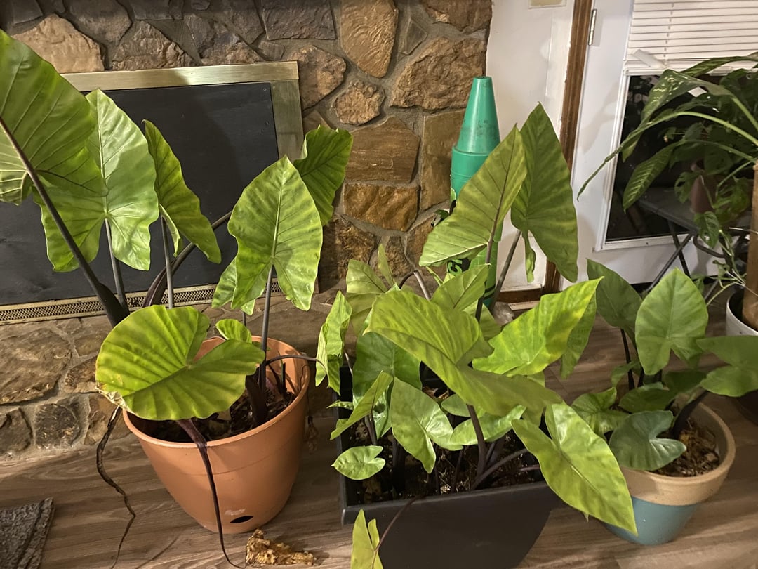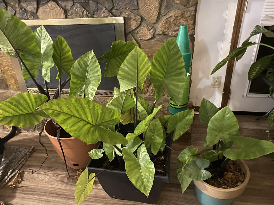 今夜のジョージア州の気温は32度なので、外から植物を取りに行きました。 ここ3ヶ月間、あまり気にしていませんでしたが、大きくなったことに気づきました。 オレンジ色の鉢の中の植物が母植物です。 彼女はスタンドから落ちて真っ二つになった。 割れた部分を保存しようとしましたが、しおれて枯れてしまいました。 私はしおれた植物を堆肥バケツに投げ込みました。 真ん中の植物と端の小さな植物は、堆肥が捨てられていたものです。