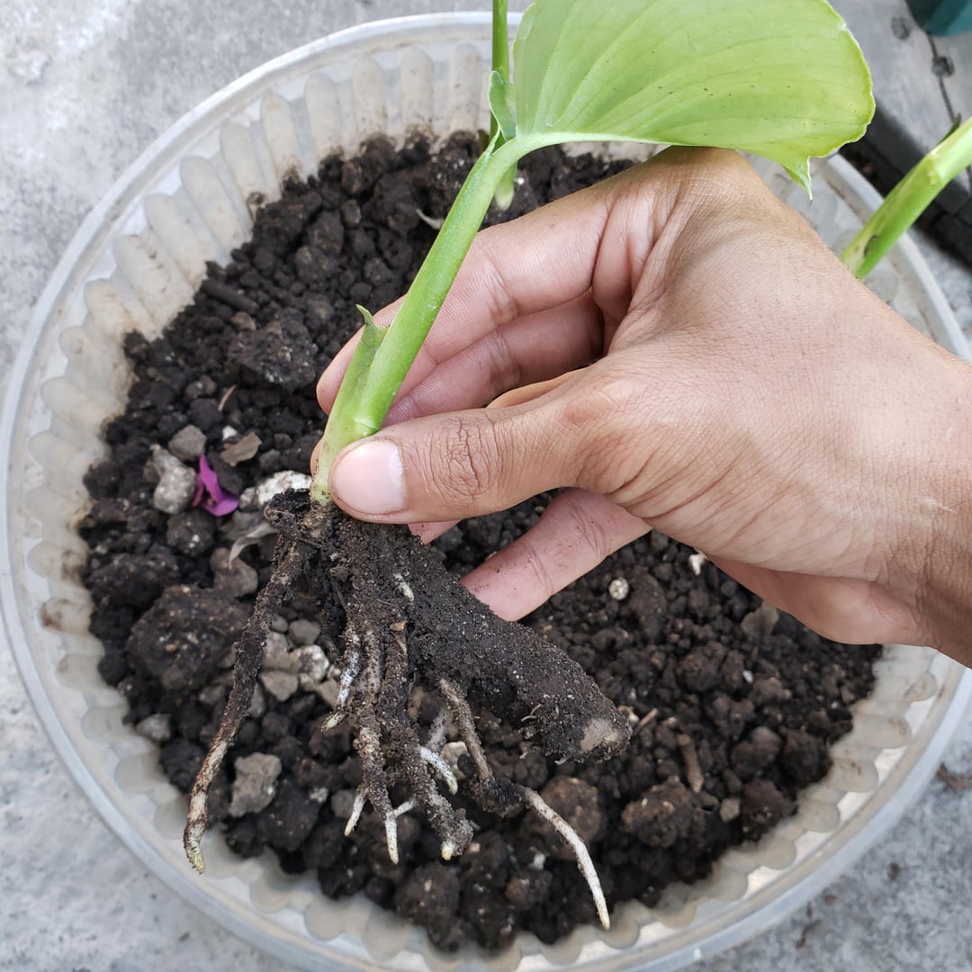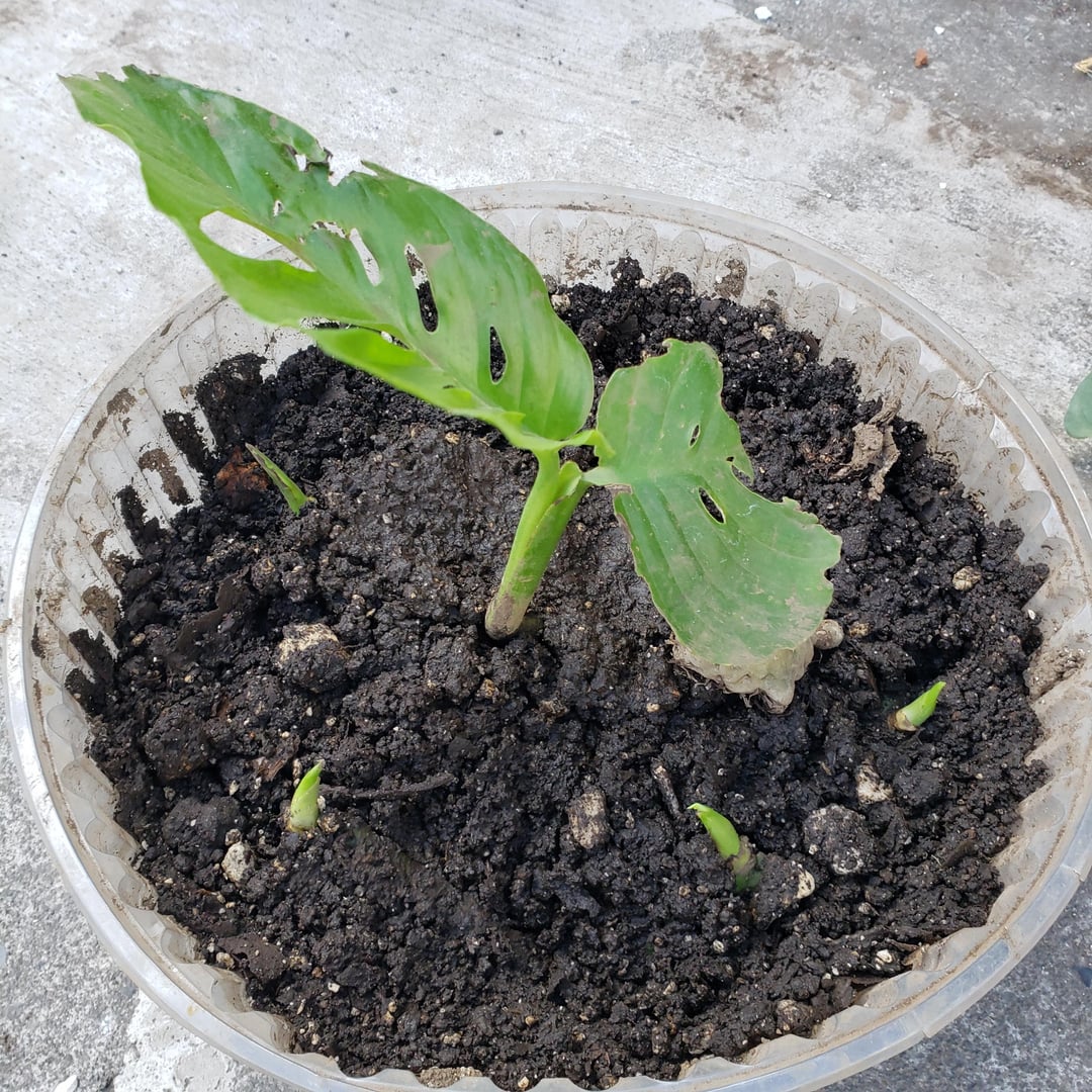 土壌で繁殖したモンステラ「不明」(3.5か月経過)