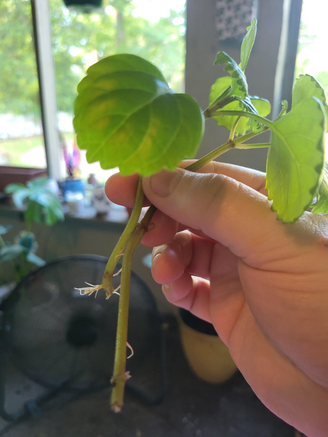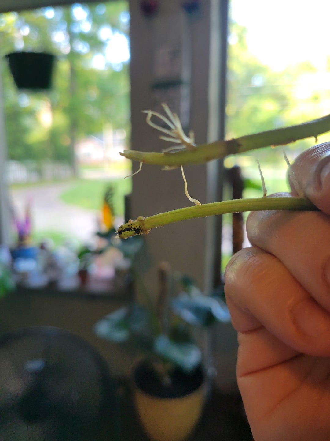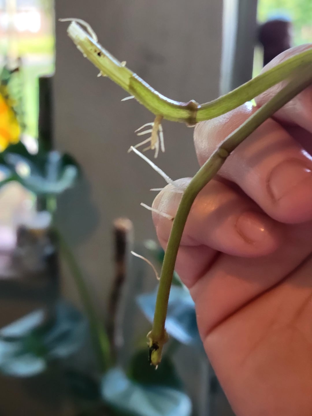 1枚目の写真は、以前投稿したやつです。もう植えられると思っていたのですが、そうではありませんでした。今はもう植えられていて、これが植えたやつです。2枚目の写真には、根が上に伸びているやつと、まだ植えられておらず瓶の中で繁殖中のやつが写っています。3枚目の写真も同じで、上に鉢植えのやつ、下にもう1本。4枚目の写真はグループ写真ですが、どちらの植物もはっきりと見えません(笑)