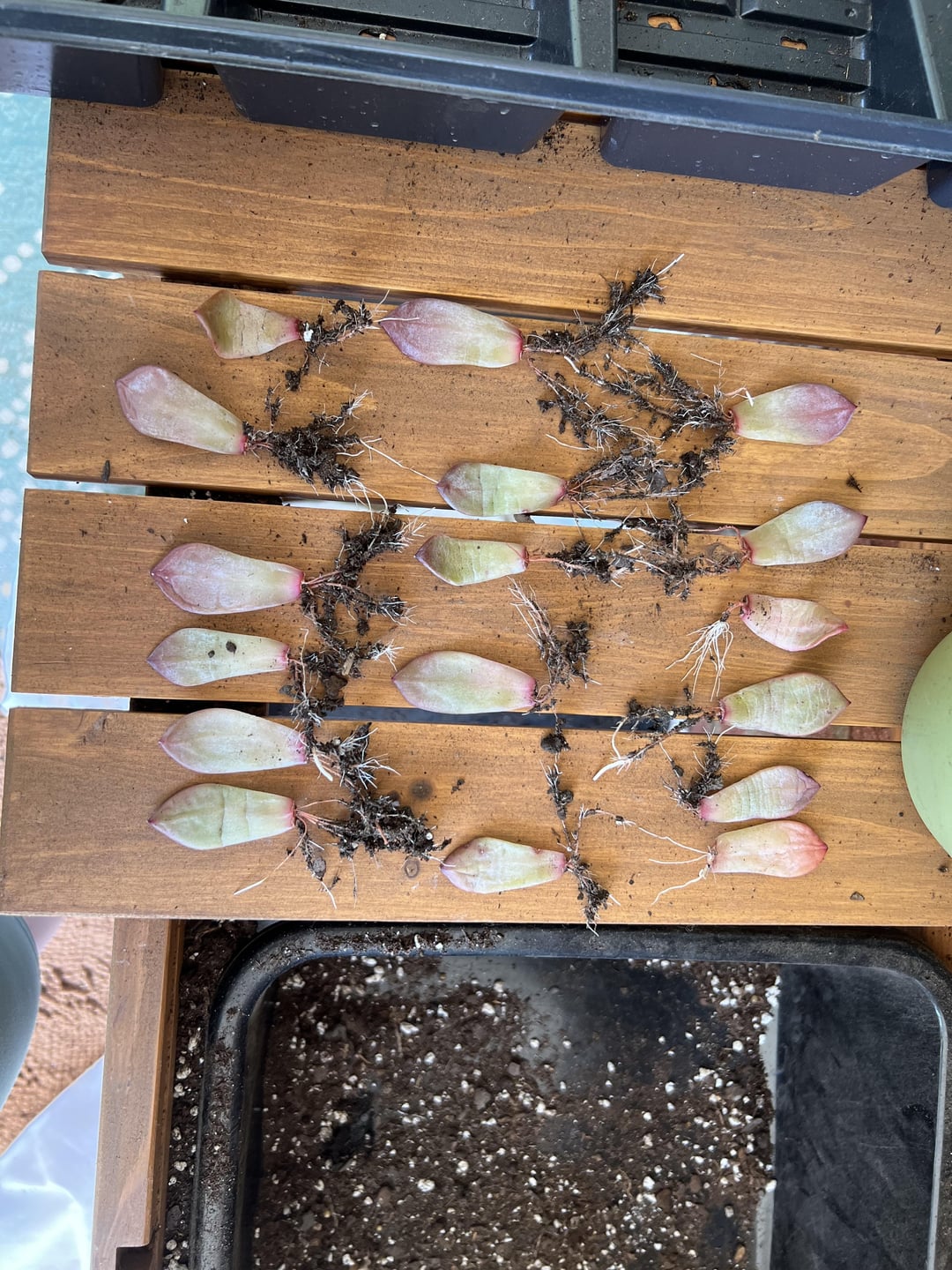 1. 何日も根を張っていますが、それ以外はあまりありません :/ 2. 母植物…昨年、頭を切り落としたときに、下の葉を取り除きました