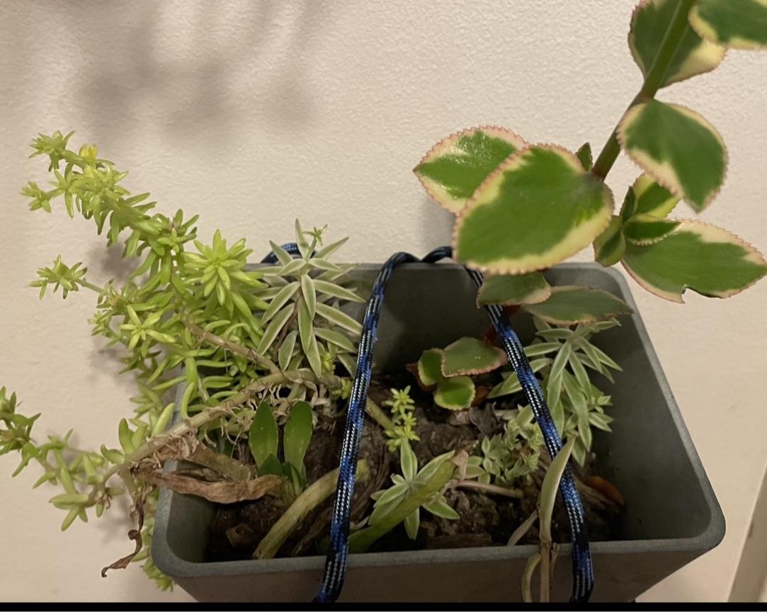 これらは、この夏の初めに大型量販店の床から救出した小道具です。 私はそれらを植え替える準備をしているので、誰かが私に代わってそれらを識別できるかどうか疑問に思っていました。 前中央と左下にある背が高くて痩せた中くらいの緑色の人たちがアロエであることは知っています。 残りの3つは何なのか気になります。