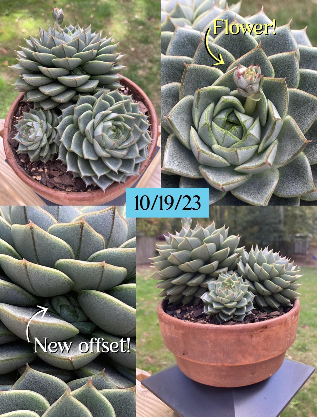 エケベリア ‘ファビオラ’ グロー(成長?)アップ! すべての方法まで。 はい、女王様。 はい。 それで、咲いている間に彼女を手に入れました、そして、彼女はついに私のために咲きました! 彼女は絶対的なユニットです。 3.5インチの小さなポットから、彼女は大きくなりすぎた6インチのポットになりました。