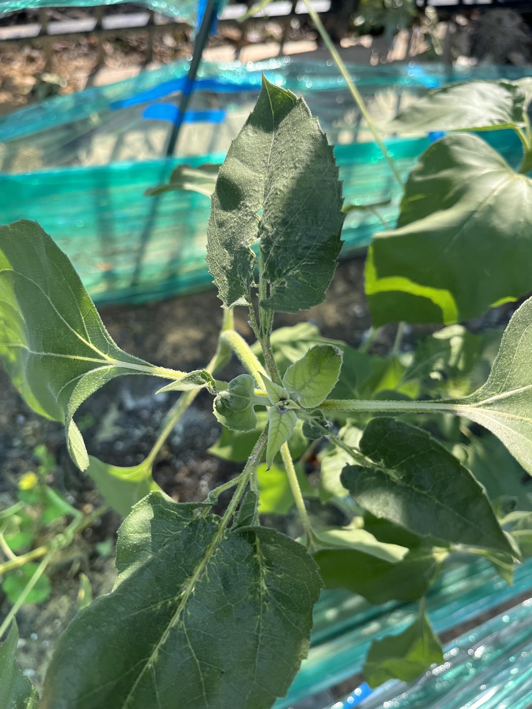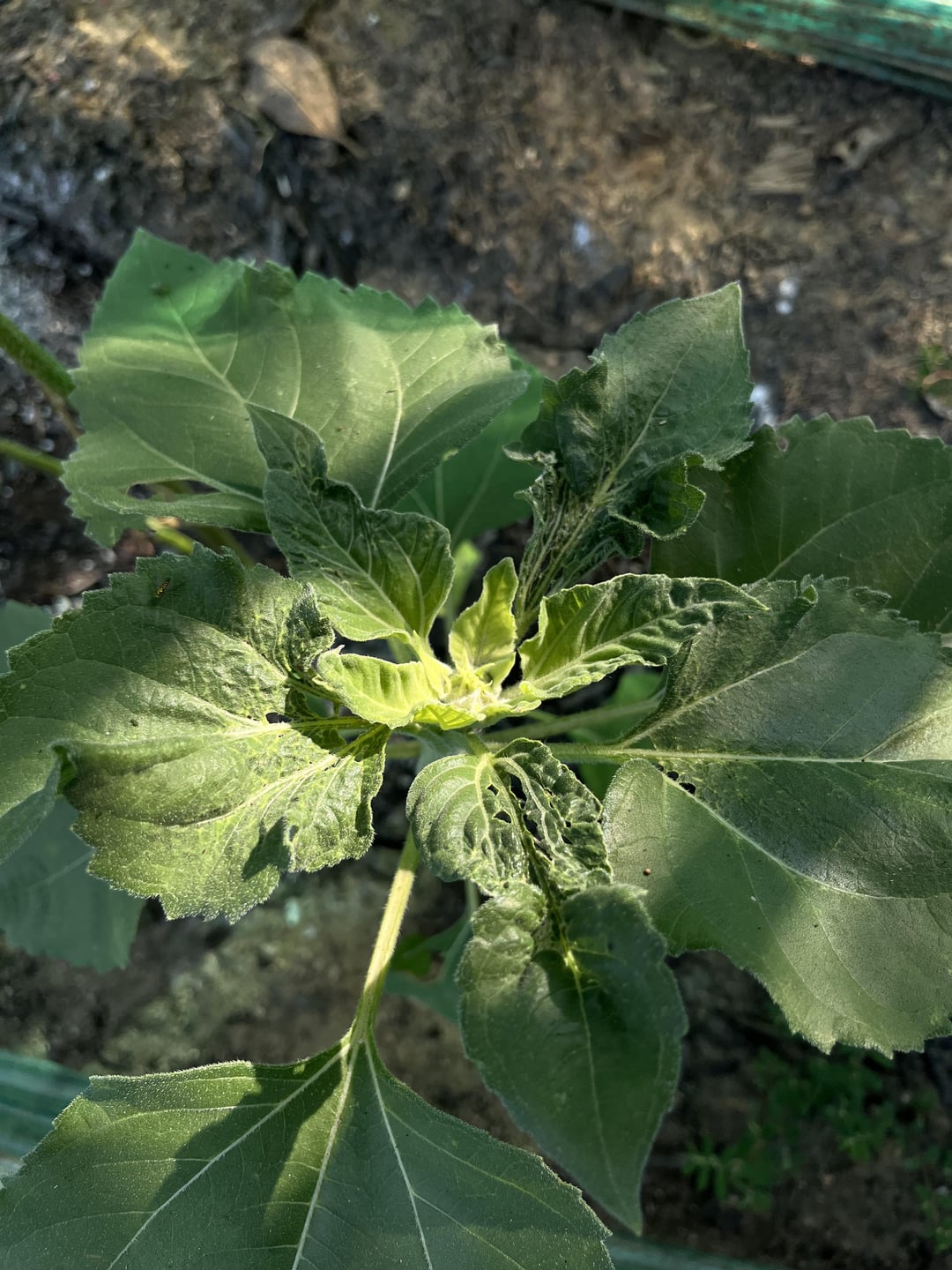 全体的に健康なヒマワリです。葉っぱが勝手に生えてきて、それ自体に付いていません。アドバイスをいただければ幸いです。