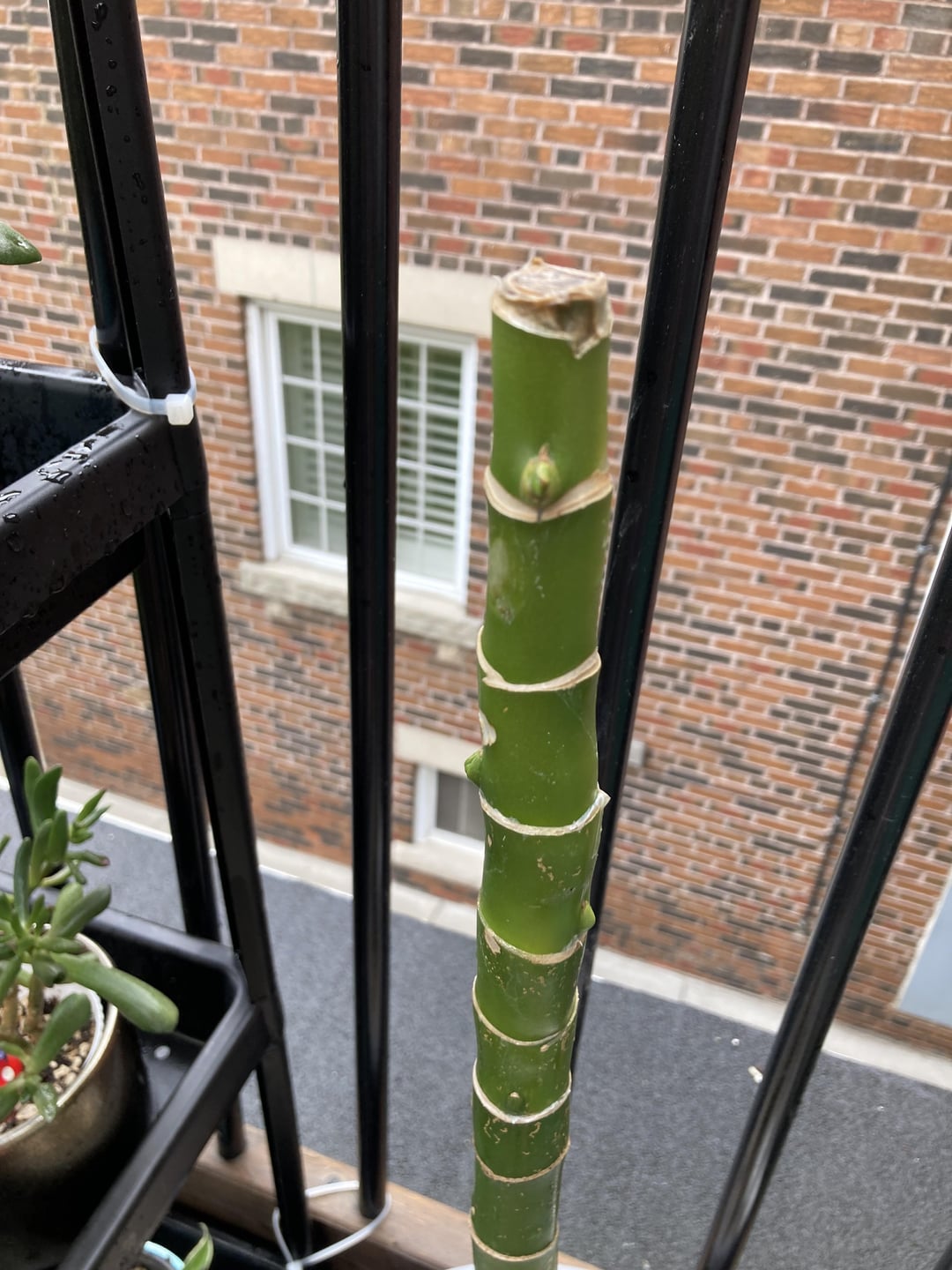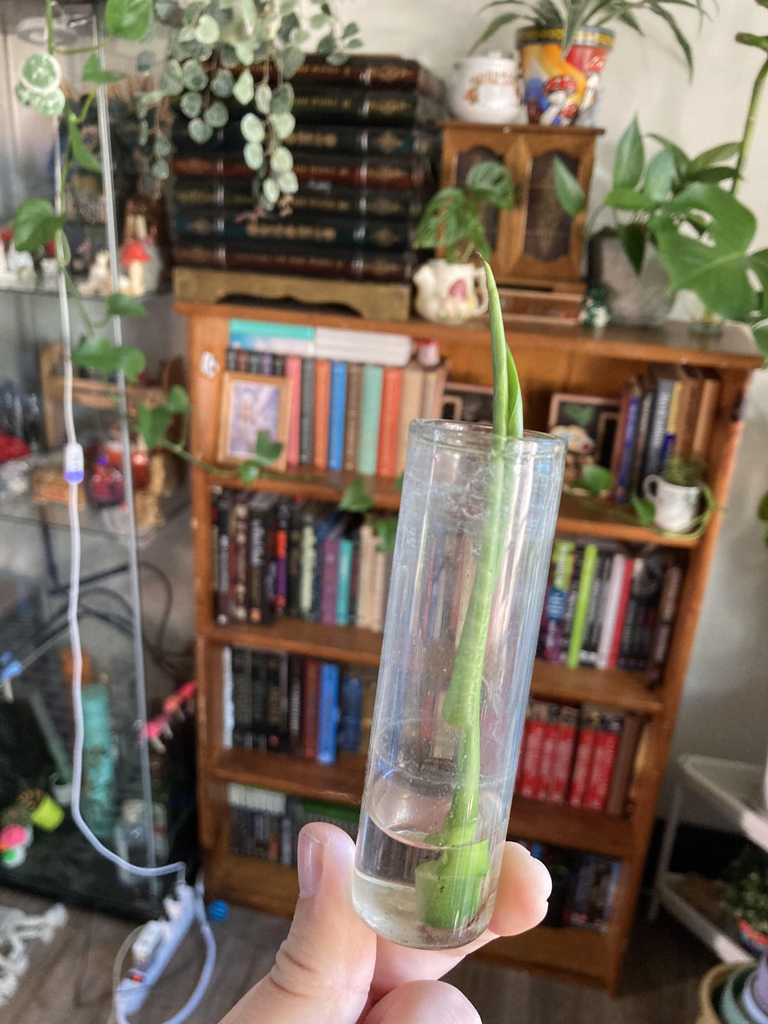 枯れた葉を掃除していたら、しばらく前に取り除いたディフェンバキアの古くて腐った成長の先端を見つけました。中にはほぼ完全に形成された新しい葉がありました。今は根付かせようとしていると思います。この植物は葉をすべて落としましたが、すでにたくさんの新しい成長をしています。
