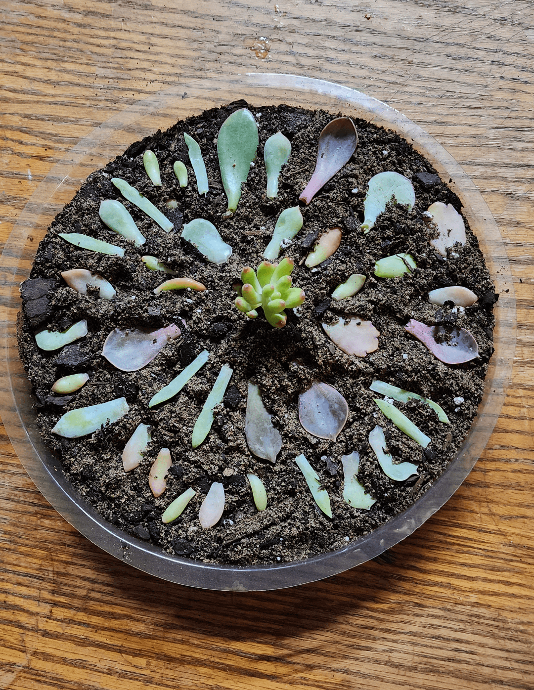 園芸店で働いているのですが、今日多肉植物が入荷しました。 一番綺麗な葉を数枚撮りました。 あまり経験がありませんが、アドバイスをいただければ幸いです 💛🌿 (いつ水やりをすればよいですか?)