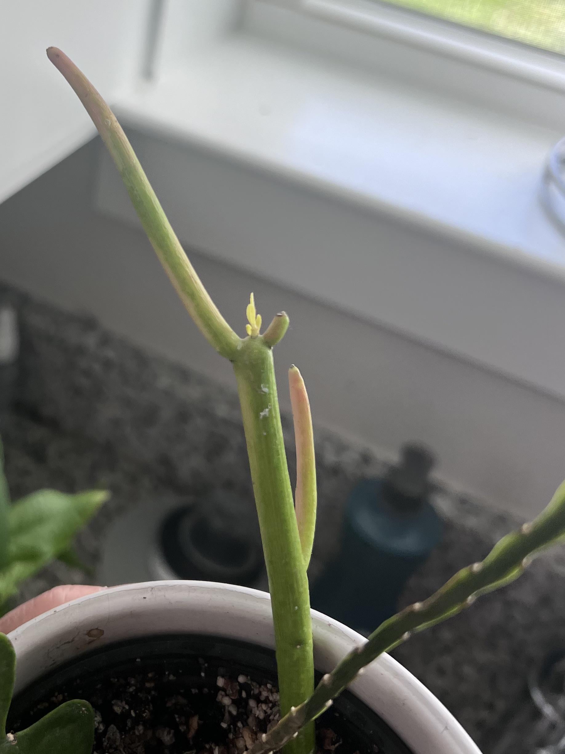 私はこれを食料品店の苗床の地面で見つけ、増殖方法を尋ねる投稿をしました。水と答えた人もいれば、サボテンの土と答えた人もいました。私は後者を選び、私が救おうとしている他のサボテンのような植物と一緒に植えました。昨日、上部にこの成長に気づきました。わくわくします! 見つけてから 67 日が経ちました。