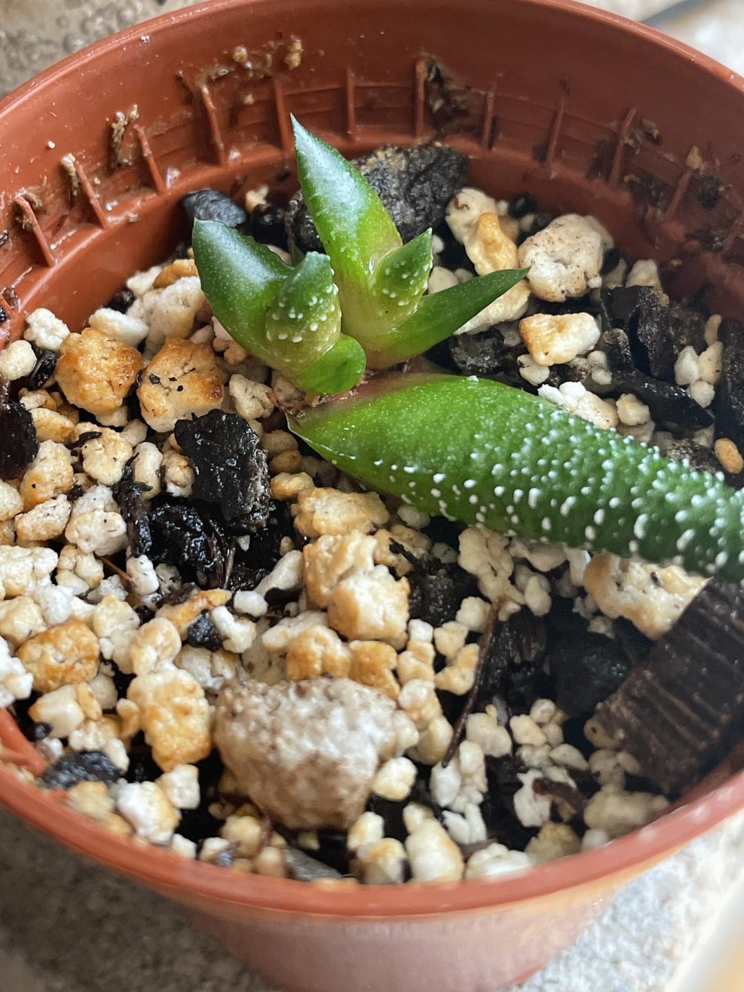 このハオルチアは、自分の葉から落ちた葉で支えています。 ゆっくりとしたプロセスですが、見るのはとても楽しいです。