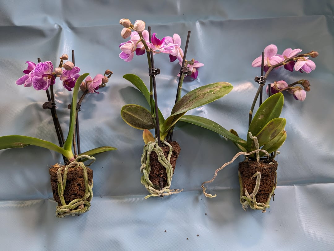 私はこの鉢植えの蘭を同僚から「贈られた」のですが、同僚はそれを贈り物として受け取ったのですが、彼女はそれを殺すと確信していました。 ここに 3 つの植物があることがすぐにわかりました。それで、すべてを別々に植え替えるつもりです。 つまり、正しい組み合わせかどうかはわかりません。 蘭の樹皮とミズゴケを持っています…実際の土を追加する必要がありますか、それともこれで十分ですか?