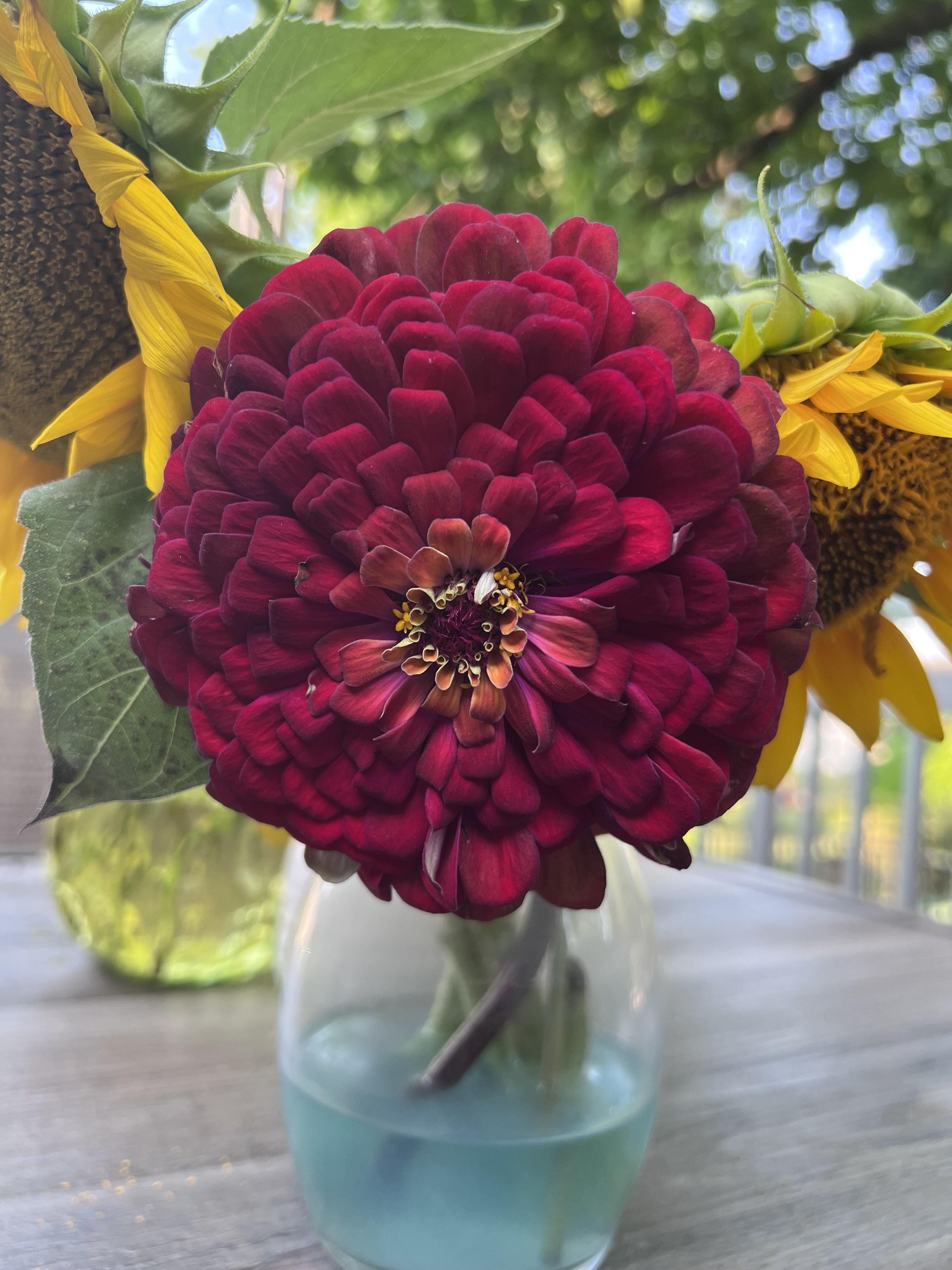 こんなに大きなジニアは見たことがなかったのですが、ジャージー島のハッピーデイファームで摘んできました😍