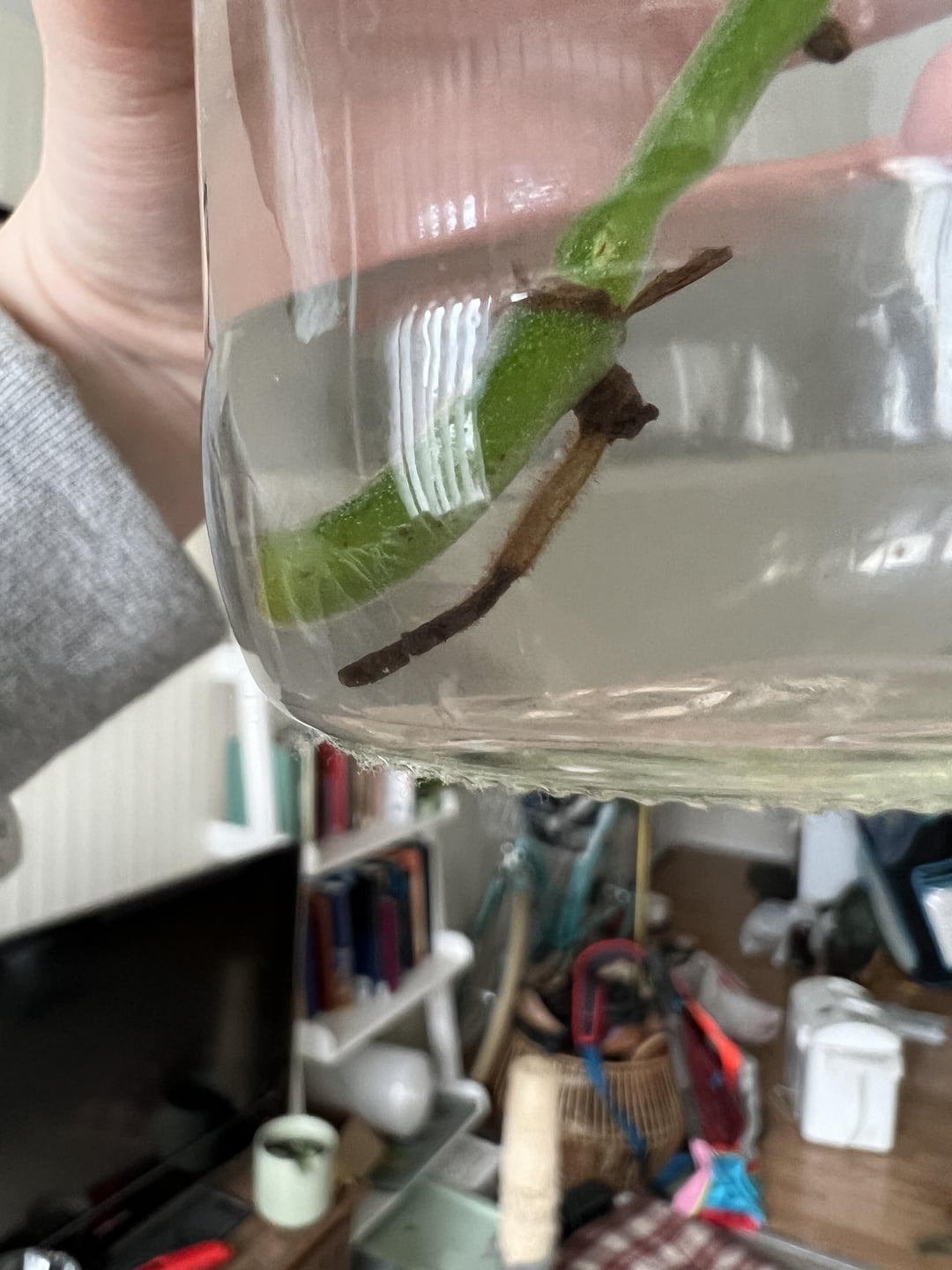 4年間飼っていた母ポトスから引き取ったこの小さな赤ちゃんは、猫が水を飲んでいたときに瓶からそれをノックアウトするまで、順調に根を伸ばしていました(私は気づかずに、1日後に小道具を見つけました)瓶の隣のテーブルの上)。 それは終わったのですか? それとも根の黒く枯れた部分を切り取って、明るい部分を再び伸ばしてもいいでしょうか?