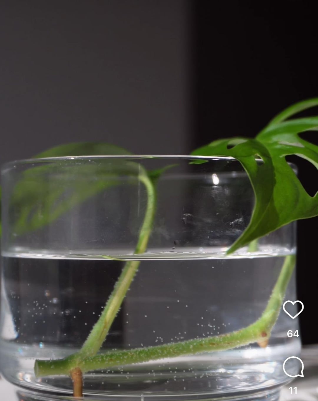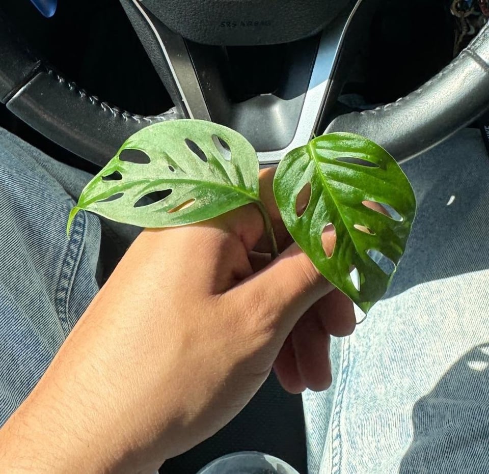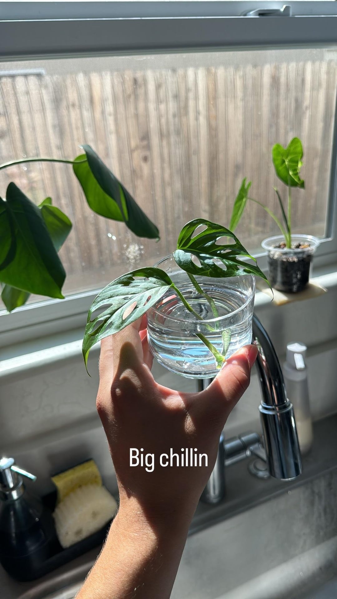 Facebookマーケットプレイスで10ドルで買おうとしたけど、お金がなさすぎた 😭 数週間後、Lowe’sに栽培用ライトを買いに行ったら、親植物の近くの地面にこれを見つけたとき、本当にうれしかった。これは元々大きな蔓の一部だったんだけど、子供か何かに引き抜かれたんだろうな。切った場所の近くの葉がたくさんぐしゃぐしゃになっていたから。レジに持って行って、持って行ってもいいか確認したら、ありがたいことに彼らは気にしなかった。生き残る可能性を高めるために、2つの節がある2枚の葉だけを取るようにきれいに切った(蔓全体は必要なかったからというのもある、笑)。根がようやく形成され始めるまで1週間かかったけど、まだとても短い。ただシェアしたかっただけ!