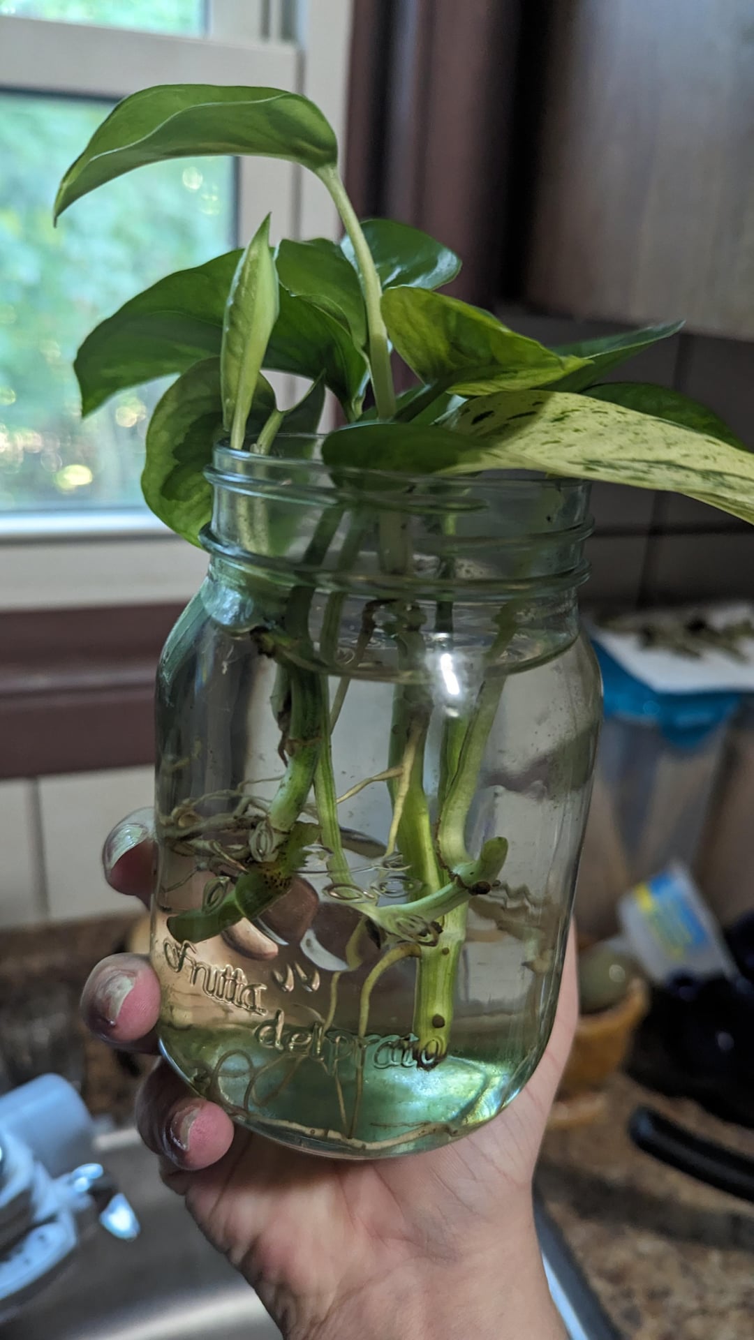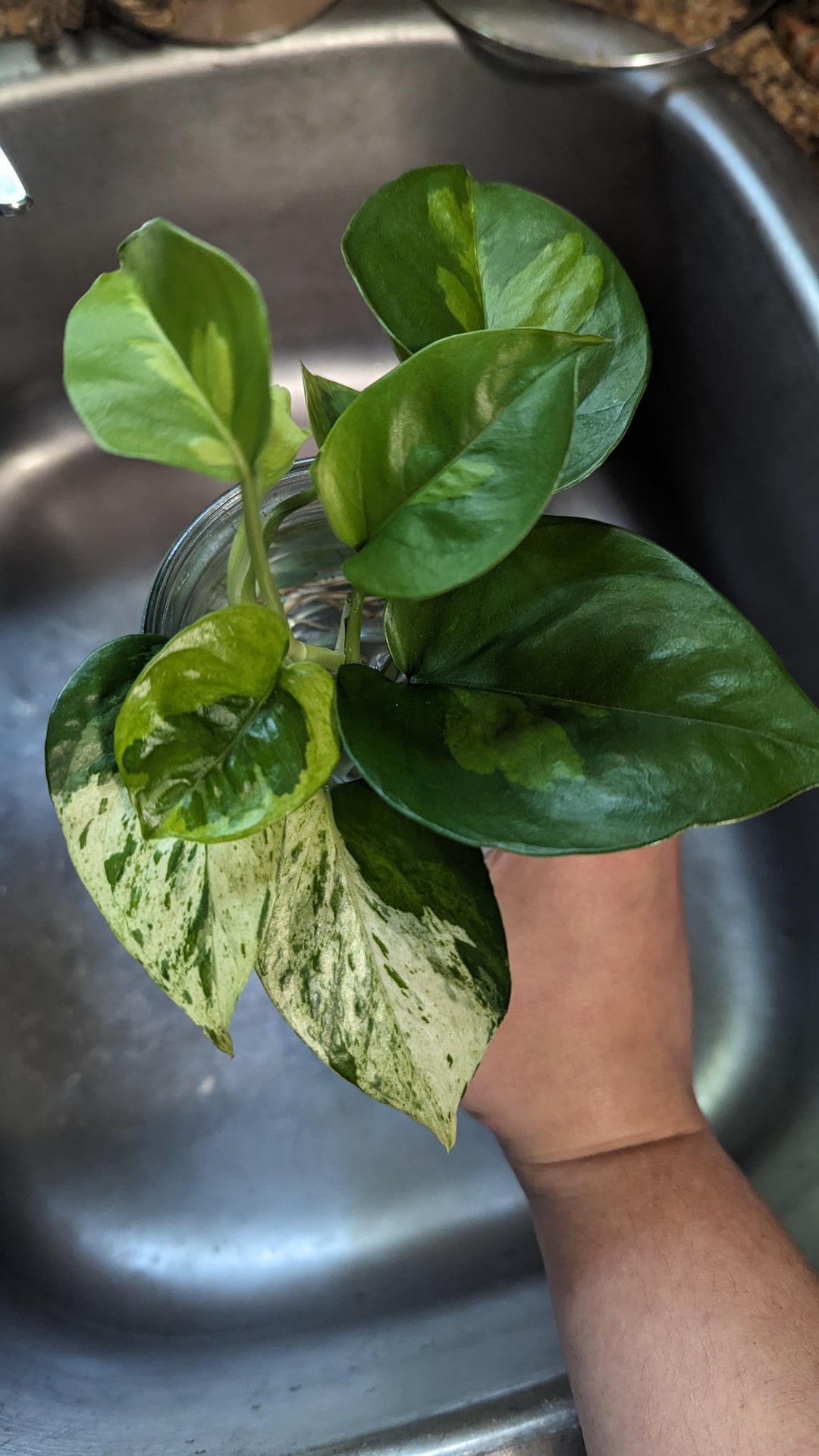 マーブルクイーンの挿し木と根の生えたグローバルグリーンを購入しましたが、売り手はプレゼントとして根の生えたレモンメレンゲを同梱していました。 根のある2本は植える前に24時間水につけておくように言われましたが、もう1本は根が出るまでに最大6週間かかります。 私の質問は、後でマーブルクイーン用のスペースを残しておけば、同じ鉢(最後の写真)にすべてを一緒に植えることができるかということです。 初めてのポトスです
