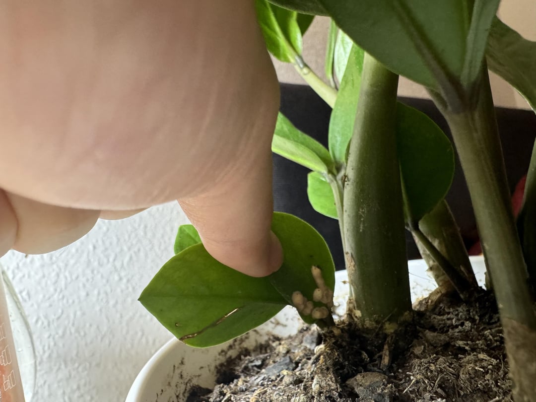 最近、ZZ 植物の葉の下に白いものを見つけました (最初の写真)。心配すべきでしょうか? それは何ですか? 硬くて葉にくっついています。他の葉には付いていません。 2枚目の写真では、排水穴から根が出てきており、3枚目の写真では、もう1枚葉を出す準備をしていると思います。軽石を買ったばかりなので、土(主に軽石)と混ぜようと思っています。軽石を入れた大きな鉢に植え替える準備はできていますか? 2、3か月前に、この植物を手に入れたときに植え替えました。
