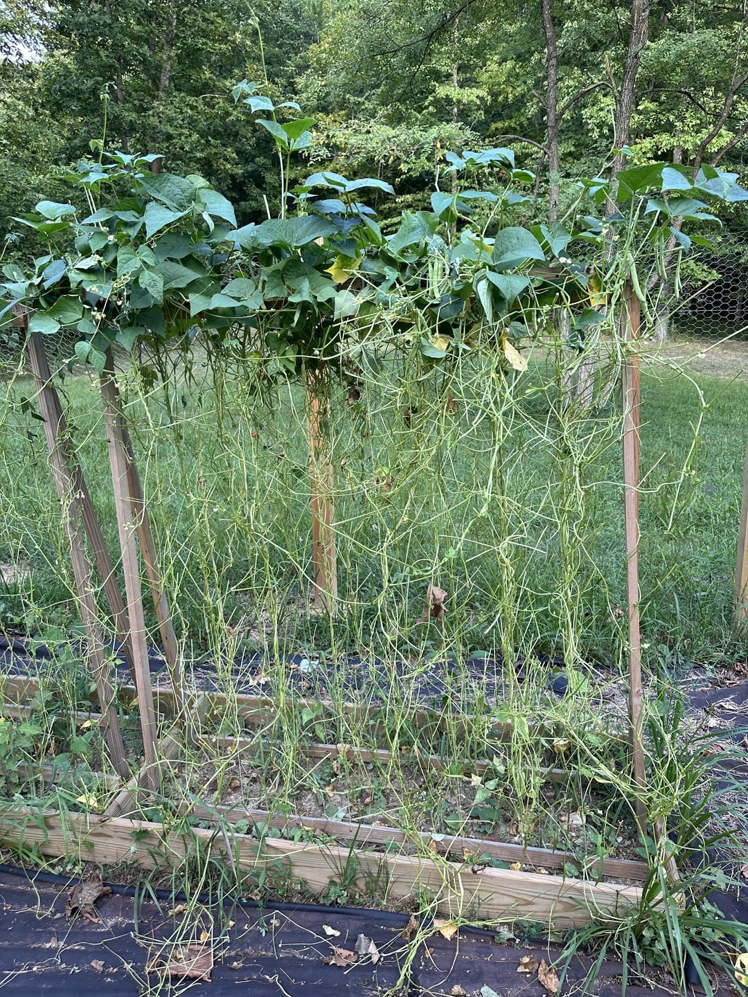 鹿の襲撃前と襲撃後。私の豆は施錠された柵の中にあるのですが、どうやら施錠されていなかったようで、昨日行ってみると柵は完全に開いていて、私の豆は全部完全にやられてしまいました。このエリア全体に60本以上の豆の木があるのですが、鹿は届く限りの高さまで全部をむしり取ってしまいました。上部にはまだ花が咲いていますが、そのままにして豆がもっとできるかどうか様子を見る価値があるのか​​、それとも全部抜いてやり直した方がいいのか迷っています。ガーデニングを始めてまだ2年目で、鹿に植物をやられたのは初めてなので、私はもちろん専門家ではありません。私はゾーン6Bにいます。缶詰をたくさん作ろうと計画していたのですが、今では豆が3つしかありません(笑)