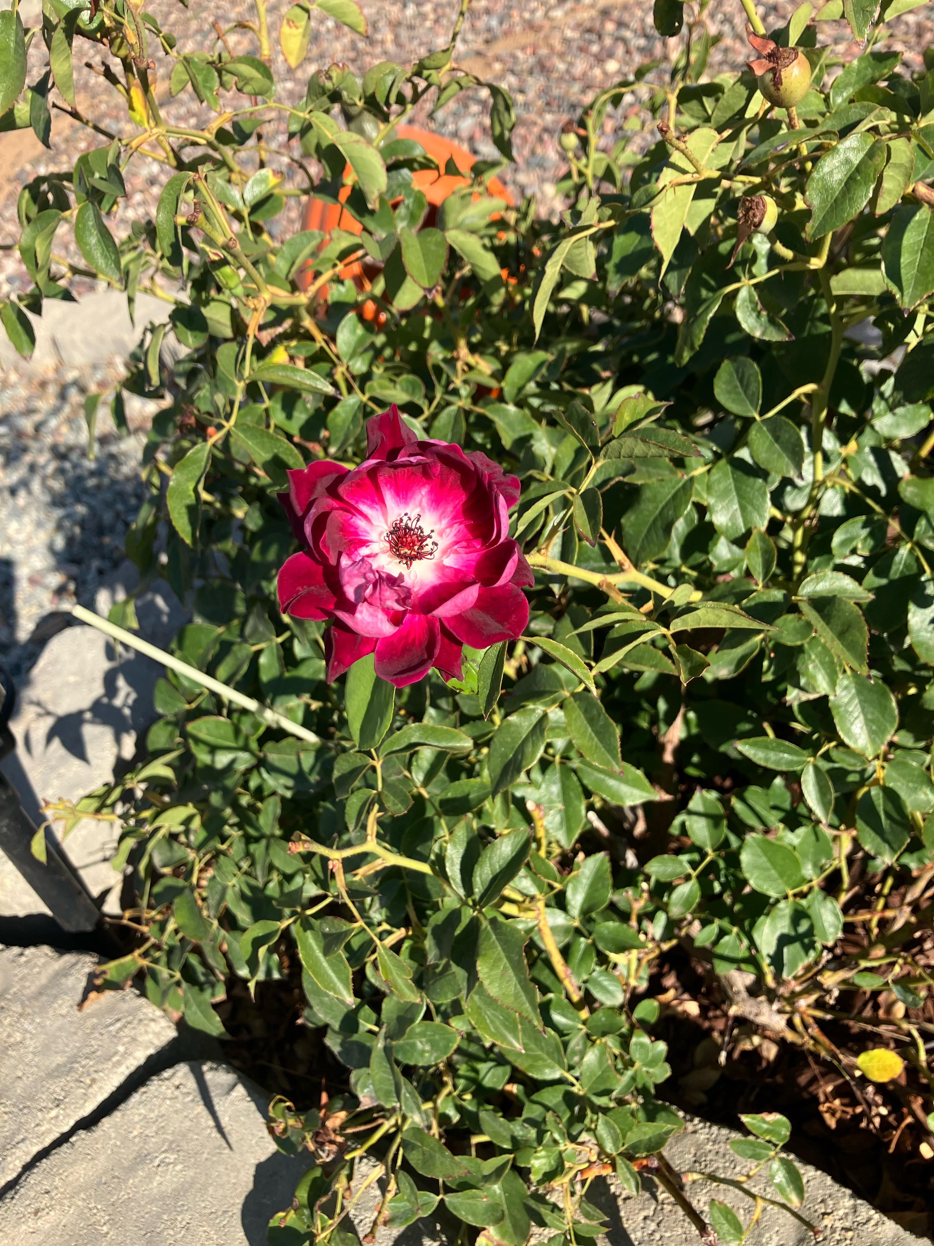 私は、気候のために、年間2つの開花季節を持っているいくつかのバラを持っています。彼らは春に爆発的な量の花で咲き、再び秋にはより控えめな量の花が咲きます。私のバラの茂みの1つでは、私がそれを手に入れる前に誰かがタグを脱いだので、私は個々の品種を知りません。春の花は紫色で、青/紫の側面にあり、より赤い紫/fuchsia(写真)に落ちます。昨年もこれを行いましたが、当時私は最初に色や栄養不足を誤って覚えているようにチョークをかけました。私の他のバラのどれもこれを行い、一貫した色を持っていません。これはいくつかのバラのバリエーションで正常ですか?