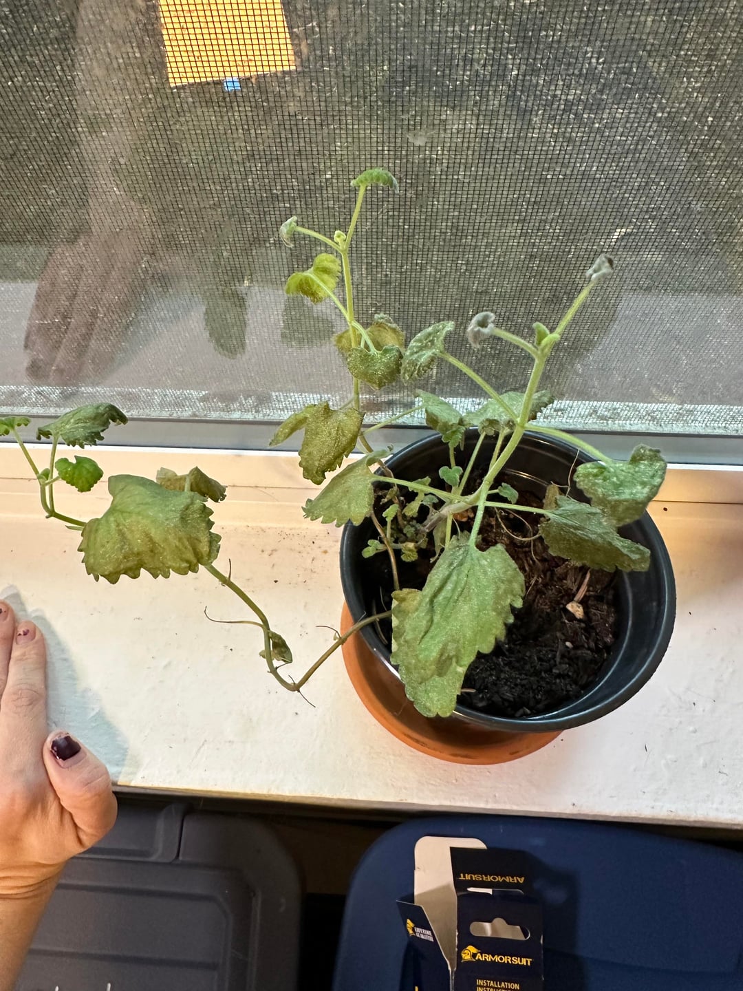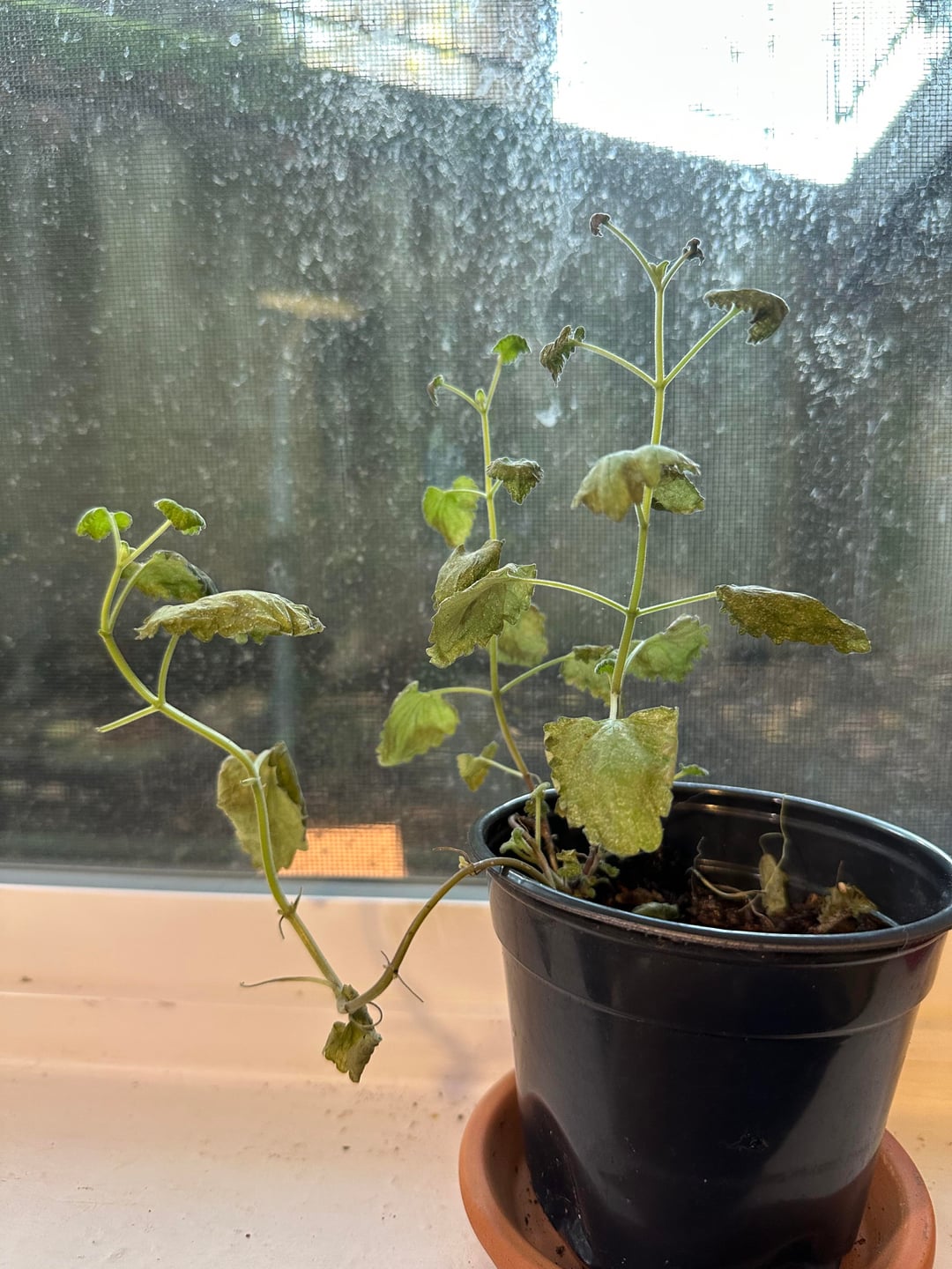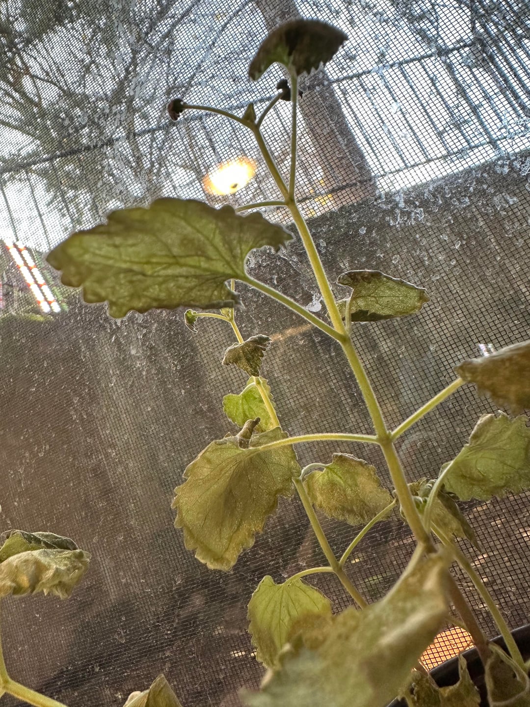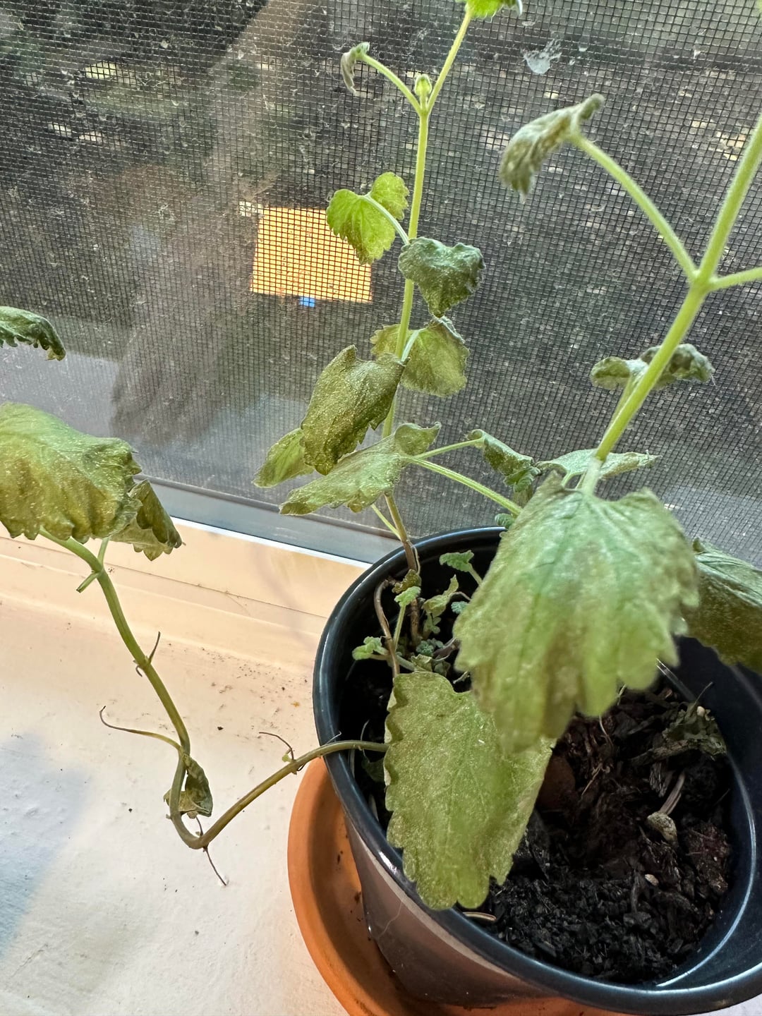 夏の間中、このマタタビは元気でした。寄生虫も虫(猫も!)に噛まれることもありません。しかし、室内に入れてから約1週間後、葉がしおれ始め、その後、この細かい白い粉が葉のほぼすべてに現れました。今は明らかに死につつある。